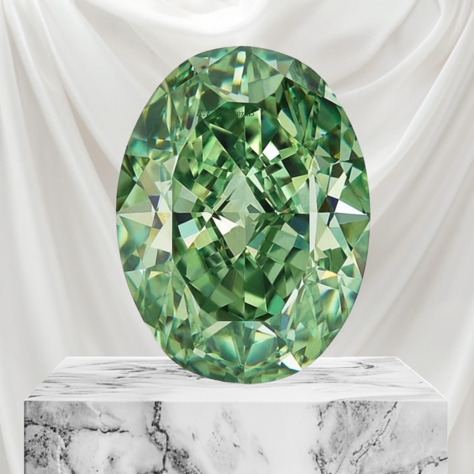 ほとんどのグリーンダイヤモンドの色は、石の表面に集中しており、中心部まで浸透していません。最も価値のあるグリーンは、より長い間放射線を受けることによって強く均一に分散した色を持っています。純粋なグリーンの他には、イエロー、ブルー、ブラウン、グレーなどの色味を併せ持つものが存在します。